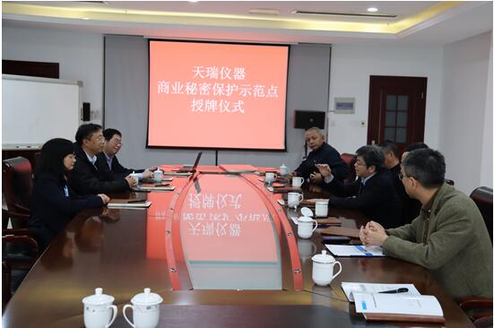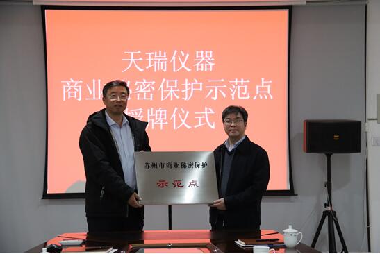 2020年12月8日,江蘇天瑞儀器股份有限公司商業秘密保護示范點創建工作通過考核驗收,我司作為昆山市蘇州市級商業秘密保護示范點正式掛牌成立。