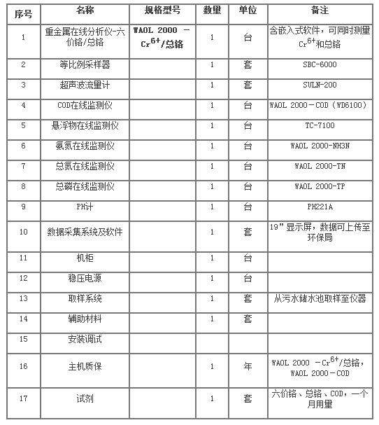 為了實現整體皮革及其制品業污水污染物監測建設,我們建立整體皮革及其制品業污水污染物監測系統,具體系統配置如下: