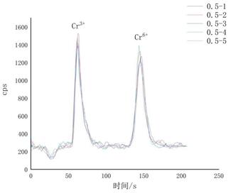 多次進(jìn)樣測(cè)定濃度為0.5 μg/L Cr3+和Cr6+混合標(biāo)準(zhǔn)溶液,進(jìn)行重復(fù)性試驗(yàn),見圖3: